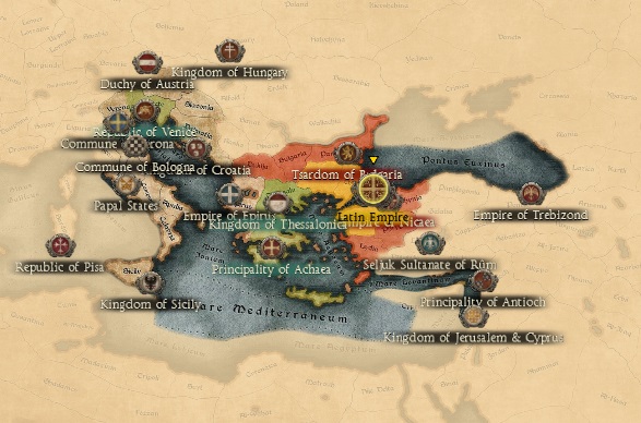 LATIN EMPIRE Faction in Kingdoms 1212 AD Attila Mod Faction Map and Start Diplomacy Info