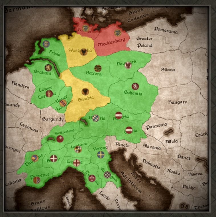 The holy roman empire is a kind of alliance between factions in and around germany. There are around 21 factions in it and usually if you are at war with one the rest in turn declare war on you. Each 21 factions have their own units and can even declare war on each other.