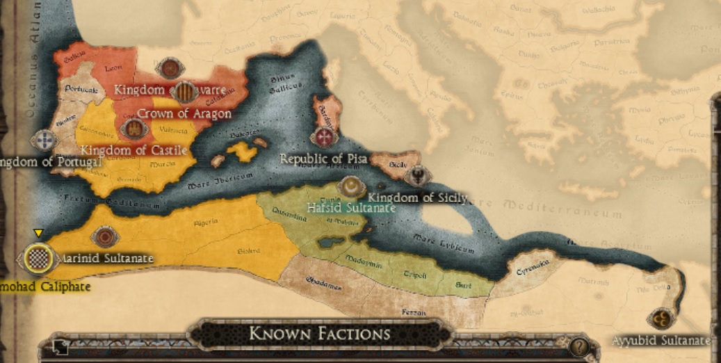 ALMOHAD CALIPHATE Facção em Kingdoms 1212 AD Mapa de facções e informações de início de diplomacia